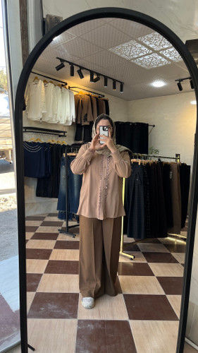 مانتو ژاکارد ترک یقه انگلیسی طرح برگ